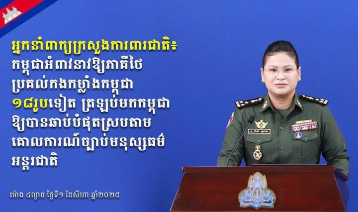 ភ្នំពេញ ៖ អ្នកនាំពាក្យក្រសួងការពារជាតិ នៃព្រះរាជាណាចក្រកម្ពុជា៖ ចំពោះបញ្ហាពាក់ព័ន្ធនឹងកងកម្លាំងយើងចំនួន ១៨ រូបដែលកំពុងស្ថិតនៅក្រោមការគ្រប់គ្រងរបស់ថៃ ចាប់តាំងពីព្រឹកព្រលឹម វេលាម៉ោង ៧:៥០នាទី … អានបន្ថែម អ្នកនាំពាក្យក្រសួងការពារជាតិ ៖ ចំពោះបញ្ហាពាក់ព័ន្ធនឹងកងកម្លាំងយើងចំនួន ១៨ ចាប់តាំងពីព្រឹកព្រលឹម វេលាម៉ោង ៧:៥០នាទី ថ្ងៃទី២៩ ខែកក្កដា ឆ្នាំ២០២៥ មកនោះ យោធាថៃបញ្ជាក់ថា ពួកគាត់មានសុខសុវត្ថិភាព