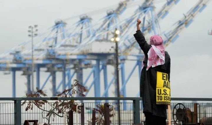 បាតុកររាប់រយនាក់បានរារាំងកប៉ាល់អាមេរិកដែលដឹកអាវុធទៅកាន់ប្រទេសអុីស្រាអែល