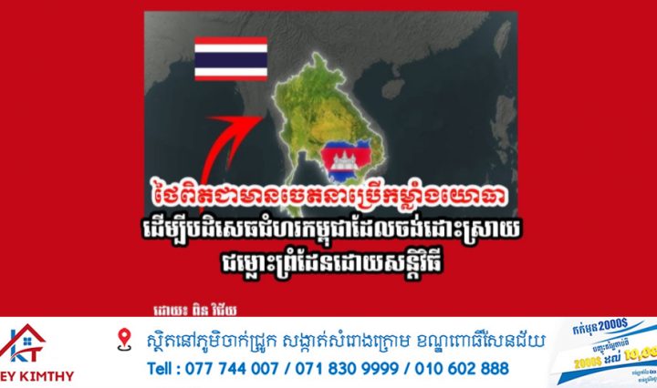 ភ្នំពេញ ៖ សេចក្តីប្រកាសព័ត៌មាន លោកស្រីឧត្តមសេនីយ៍ឯក ម៉ាលី សុជាតា អ្នកនាំពាក្យក្រសួងការពារជាតិ នៃព្រះរាជាណាចក្រកម្ពុជា បានឱ្យដឹងថា ៖ … អានបន្ថែម ក្រសួងការពារជាតិកម្ពុជា ៖ កម្ពុជាសម្តែងនូវការព្រួយបារម្ភយ៉ាងខ្លាំង ចំពោះការបង្កហេតុ និងការបន្តផ្ទុះអាវុធនៅខាងភាគីថៃខ្លួនឯង