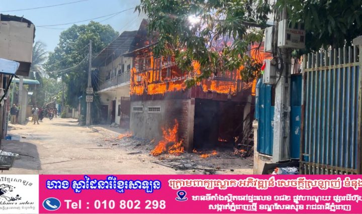 ភ្នំពេញ៖ ផ្ទះឈើលើ ថ្មក្រោម ទំហំ ៥មX៦ម ត្រូវបានអគ្គីភ័យឆាបឆេះយ៉ាងសន្ធោសន្ធៅ នាវេលាម៉ោង ១៣:០០នាទី ថ្ងៃសៅរ៍  ទី០៤ … អាន​បន្ថែម គួរឲ្យសោកស្ដាយណាស់..! ម្ចាស់ផ្ទះមានជម្ងឺសរសៃប្រសាទដុតផ្ទះខ្លួនឯងឆេះយ៉ាងសន្ធោសន្ធៅ
