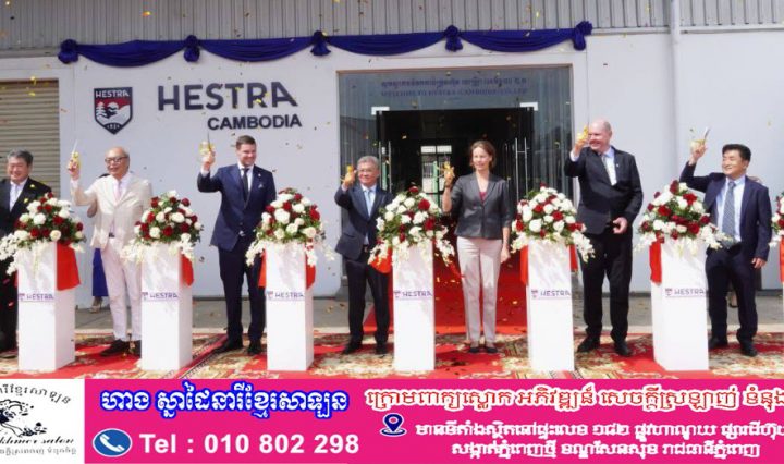 ពិធីសម្ពោធបើកឱ្យដំណើរការរោងចក្រផលិតស្រោមដៃ របស់ក្រុមហ៊ុន HESTRA (Cambodia) Co., Ltd. នៅក្នុងតំបន់សេដ្ឋកិច្ចពិសេស រ៉ូយ៉ាល់គ្រុប ភ្នំពេញ