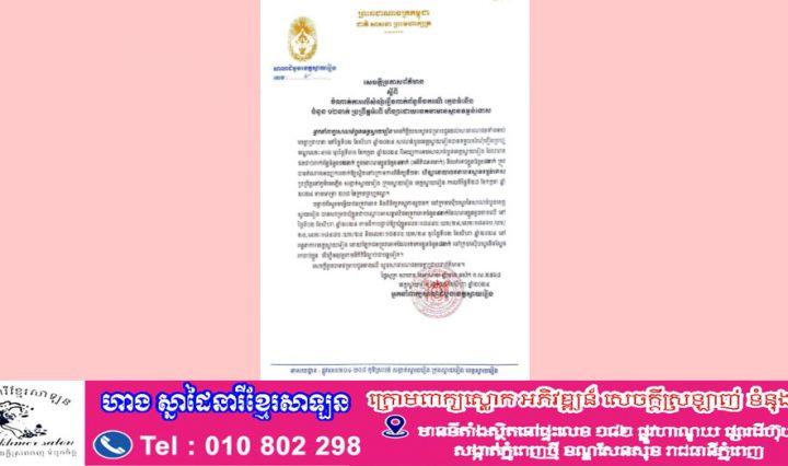 ភ្នំពេញ៖ សម្ដេចមហាបវរធិបតី ហ៊ុន ម៉ាណែត នាយករដ្ឋមន្ត្រីកម្ពុជា នាល្ងាចថ្ងៃសុក្រ ទី២ សីហា ២០២៤នេះ បានថ្លែងប្រសាសន៍សំខាន់ៗនាឱកាសអញ្ជើញជាអធិបតីចូលរួមសំណេះសំណាល … អានបន្ថែម សម្ដេចធិបតី ថ្លែងប្រសាសន៍សំខាន់ៗនាឱកាសជួបសំណេះសំណាល និងពិសាភោជនាហារសាមគ្គី នៃមហាគ្រួសារ សមាគមឧកញ៉ាកម្ពុជា និងសមាគមអ្នកភិវឌ្ឍន៍លំនៅឋានកម្ពុជា