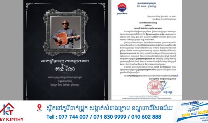 ភ្នំពេញ ៖ សម្តេចមហាបវរធិបតី ហ៊ុន ម៉ាណែត នាយករដ្ឋមន្ត្រី នៃកម្ពុជា នៅថ្ងៃទី២៨ ខែមិថុនា ឆ្នាំ២០២៤ … អានបន្ថែម សម្តេចធិបតី ហ៊ុន ម៉ាណែត សូមចូលរួមរំលែកទុក្ខយ៉ាងក្រៀមក្រំបំផុត ចំពោះក្រុមគ្រួសារ លោកព្រឹទ្ធាចារ្យកោសល្យវោហារ គង់ ណៃ មរត៌កមនុស្សរស់ចាបុីដងវែង ដែលបានទទួលមរណភាព