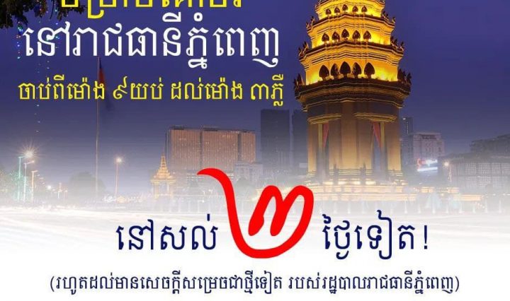 ភ្នំពេញ, នៅសល់តែ ២ ថ្ងៃទៀតទេ សម្រាប់ការអនុវត្តបម្រាមគោចរ នៅរាជធានីភ្នំពេញ រហូតដល់មានសេចក្ដីសម្រេចជាថ្មីទៀត របស់រដ្ឋបាលរាជធានីភ្នំពេញ! នេះបើយោងតាមការបញ្ជាក់ឲ្យដឹងពីអង្គភាពអនុគណៈកម្មការស្រាវជ្រាវជំងឺកូវីដ-១៩ នៅល្ងាចថ្ងៃទី១១ … អានបន្ថែម នៅសល់តែ ២ ថ្ងៃទៀតទេ សម្រាប់ការអនុវត្តបម្រាមគោចរ នៅរាជធានីភ្នំពេញ !