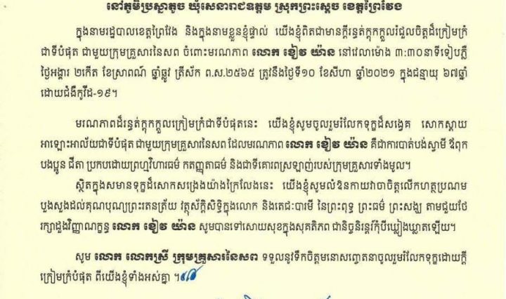 ខេត្តស្ទឹងត្រែង: ស្ត្រីមេម៉ាយម្នាក់មានដីមួយកន្លែង ក្រោយប្តីស្លាប់ចោលដោយសារក្មេងទំនើងចាក់សម្លាប់ ក្នុងពិធីវង្សរាំធុងបាស់ក្នុងនាមប្តីខ្លួន ជាសន្តិសុខការពារភូមិចូលទៅឃាត់ក្នុងពេលឈ្លោះគ្នា ដោយមិនបានប្រយ័ត្នត្រូវក្មេងទំនើងចាក់ស្លាប់ក្នុងគ្រានោះរួចមក។ ក្រោយមកត្រូវបានលោកឃឹម សុខា មេឃុំកាំងចាមបានកាងយកធ្វើជាកម្មសិទ្ធិ ដោយឃើញខ្លួនជាស្ត្រីមេម៉ាយអត់ប្តីទៅ … អានបន្ថែម លោកមេឃុំកាំងចាមពិតជាខ្លាំងមែន សូម្បីតែដីសល់បន្តិចក្រោយធ្វើផ្លូវ របស់ពលរដ្ឋក៏ឈូសភ្ចួរ រំលោភយកជាកម្មសិទ្ធិឥតខ្មាសដែរ