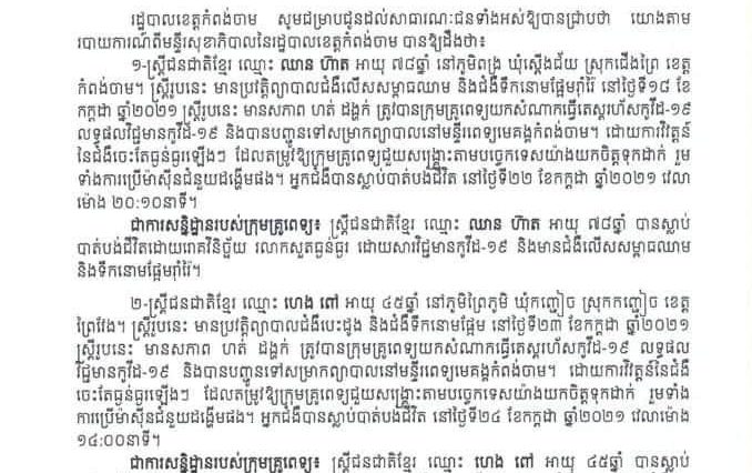 ភ្នំពេញ ៖ ព្រោះតែភ្លើងប្រចណ្ឌដោយសារតែស្រីស្នេហ៍មានសង្សារថ្មី បណ្តាលឲ្យមន្រ្តីបាក់ស័ក្តិបួនកន្លះម្នាក់នៃបញ្ជាការដ្ឋានកងអង្គរក្ស ដកកាំភ្លើងខ្លីបាញ់ផ្អើលអ្នកភូមិ។ ហេតុការណ៍នេះបង្កឲ្យមានការភ្ញាក់ផ្អើលឡើងកាលពីវេលាម៉ោងជាង៨យប់ថ្ងៃទី២៥ ខែកក្កដា ឆ្នាំ២០២១ នៅចំណុចផ្ទះរបស់នារីរងគ្រោះ ក្នុងភូមិសាមគ្គីទី១ … អានបន្ថែម ខឹងស្រីស្នេហ៍មានប្រុសថ្មី មន្ត្រីស័ក្តិបួនកន្លះម្នាក់ដកកាំភ្លើងបាញ់ផ្អើលភូមិសាមគ្គី ត្រូវសមត្ថកិច្ចចុះទៅឃាត់ខ្លួន