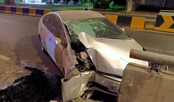 បើករថយន្តបុកបង្កាន់ដៃស្ពានអាកាសផ្សារដីហុយខូចខាតយ៉ាងដំណំ