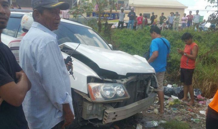ព្រឹកមិញរថភ្លើងបុករថយន្តហាយឡិនឌ័រមួយគ្រឿងប៊ើងធ្លាក់ផ្លូវបានរងការខូចខាតផ្នែកខាងមុខ