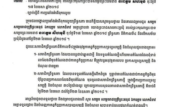 ភ្នំពេញ៖ នៅយប់ថ្ងៃទី២១ ខែមេសា ឆ្នាំ២០១៨ ចាប់ពីវេលាម៉ោង ២០:០០នាទីដល់ម៉ោង ២១:០០នទី គណ:បញ្ជាការឯកភាពរដ្ឋបាលខណ្ឌសែនសុខ ដឹកនាំដោយ លោក … អានបន្ថែម ឃាត់ខ្លួនយុវជនម្នាក់ ជាមួយកាំបិតវែងមួយដើម និងដកហូតម៉ូតូមួយគ្រឿង ខណៈពេលដាក់កម្លាំងឆែកត្រួតពិនិត្យអាវុធជាតិផ្ទុះ គ្រឿងញៀន និងរឹតបន្តឹងច្បាប់ចរាចរាចរណ៍ផ្លូវគោក