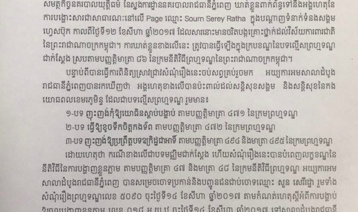 ខេត្តកណ្ដាល៖ប្រភពព័ត៌មានមួយ បង្ហើបឲ្យដឹងថា សំណុំរឿងលោក ស៊ឹម ប៊ុតបណ្ឌិត អតីតអធិការនគរបាលក្រុងតាខ្មៅ បច្ចុប្បន្នជានាយការិយាល័យគ្រប់គ្រងសន្តិសុខឯកជននៃស្នងការដ្ឋាននគរបាលខេត្តកណ្ដាល និង កូនចៅ៣នាក់ ពាក់ព័ន្ធការដោះលែងស្ត្រីសង្ស័យពីរនាក់ជាថ្នូរនឹងប្រាក់ចំនួន៧០០ដុល្លារអាមេរិក … អានបន្ថែម សំណុំរឿងអតីតអធិការនគរបាលក្រុងតាខ្មៅ និង កូនចៅ៣នាក់ ដោះលែងស្ត្រីសង្ស័យពីរនាក់ជាថ្នូរ នឹងប្រាក់៧០០ដុល្លារអាមេរិក អយ្យការបញ្ជូនទៅACU វិញ