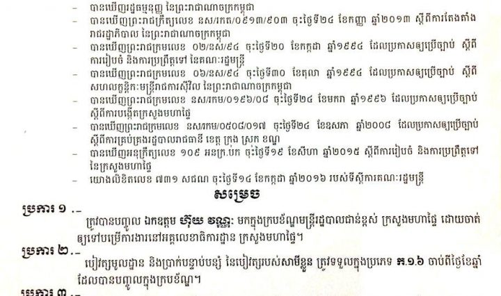 ភ្នំពេញ៖ រាជរដ្ឋាភិបាលកម្ពុជា នឹងបដិសេធចោលទាំងអស់នូវលិខិតស្នាម ឬឯកសាររដ្ឋបាលបញ្ជាក់ភាពជា «ពលរដ្ឋខ្មែរ» ដែលត្រូវបានអាជ្ញាធរ និងសមត្ថកិច្ច បានចេញឲ្យជនអន្តោប្រវេសន៍នៅកម្ពុជានាពេលកន្លងមក។ នាយឧត្តមសេនីយ៍ សុខ … អានបន្ថែម ប្រជាពលរដ្ឋគាំទ្ររាជរដ្ឋាភិបាលប្រកាសលុបចោល រាល់ឯកសារបញ្ជាក់ជា «ពលរដ្ឋខ្មែរ» របស់ជនអន្តោប្រវេសន៍នៅកម្ពុជា