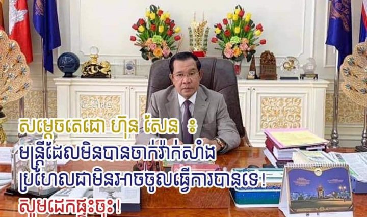 សម្តេចតេជោ ហ៊ុន សែន ៖ មន្ត្រីដែលមិនបានចាក់វ៉ាក់សាំង ប្រហែលជាមិនអាចចូលធ្វើការបានទេ! សូមដេកផ្ទះចុះ