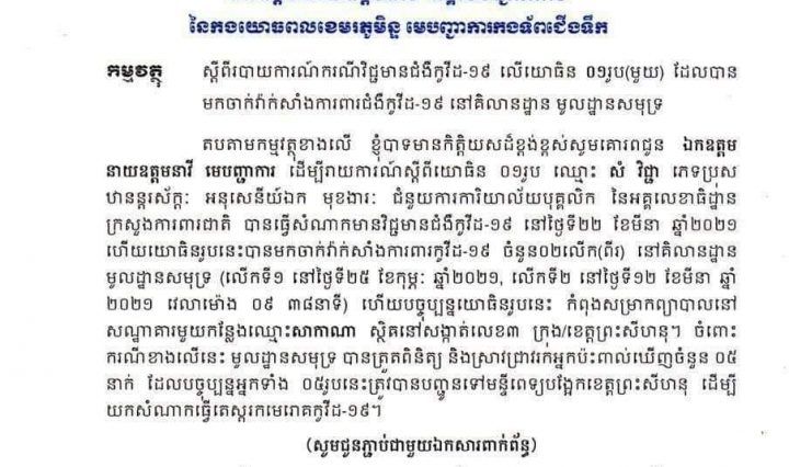 នាយរងការិយាល័យសេដ្ឋកិច្ច នៃស្នងការដ្ឋាន នគរបាលខេត្តត្បូងឃ្មុំ ពាក់ព័ន្ធវិជ្ជមានកូវីដ-១៩ និងបានជួបមនុស្សច្រើន