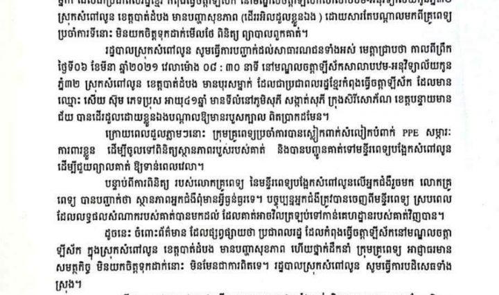 ភ្នំពេញ, នៅថ្ងៃទី៦ ខែមីនា ឆ្នាំ២០២១ វេលាម៉ោង១៥និង៤៥នាទី នៅចំនុចក្នុងបុរីពិភពថ្មីកំបូល១ មានក្រុមក្មេងទំនើងមានគ្នាចំនួន០៤នាក់ ប្រើប្រាស់ម៉ូតូចំនួន០៣គ្រឿង បានធ្វើសកម្មភាពបង្ហោះម៉ូតូទៅវិញទៅមកក្នុងបុរីពិភពថ្មីកំបូល១ ស្ថិតក្នុងសង្កាត់កន្ទោក … អានបន្ថែម ករណីក្មេងទំនើងបង្ហោះម៉ូតូ ត្រូវនគរបាលខណ្ឌកំបូល យកមកអប់រំ