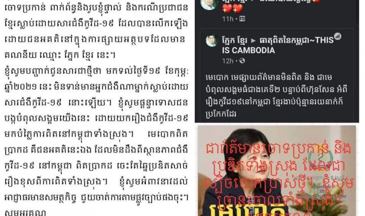 ភ្នំពេញ, សម្តេចអគ្គមហាសេនាបតីតេជោ ហ៊ុន សែន នាយករដ្ឋមន្រ្តីនៃព្រះរាជាណាចក្រកម្ពុជា នៅព្រឹកថ្ងៃទី២០ ខែកុម្ភៈ ឆ្នាំ២០២១នេះ បានអញ្ជើញថ្លែងសារពិសេសទៅកាន់បងប្អូនប្រជាពលរដ្ឋទូទាំងប្រទេស ពាក់ព័ន្ធស្ថានភាពឆ្លងជំងឺកូវីដ១៩ថ្មី … អានបន្ថែម Update, សម្តេចតេជោ ហ៊ុន សែន អញ្ជើញថ្លែងសារពិសេសទៅកាន់បងប្អូនជនរួមជាតិ ពាក់ព័ន្ធនឹងករណីជំងឺកូវីដ១៩ឆ្លងសហគមន៍២០កុម្ភៈ