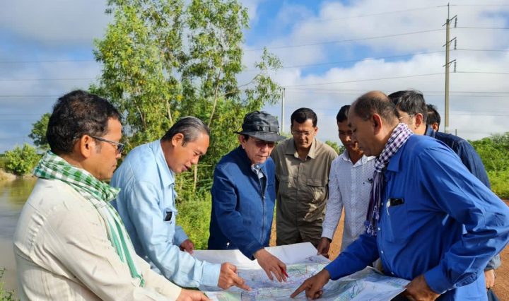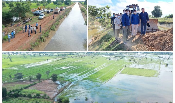 លោករដ្ឋមន្ត្រីលឹម គានហោ បន្តបេកសកម្មចុះពិនិត្យស្ថានភាពទឹក និងចាត់បញ្ជាអន្តរាគមន៍តភ្ជាប់ទំនប់ប្រឡាយដូនកាយថ្មី នៅក្នុងឃុំជន្លាស់ដៃ ស្រុកក្រឡាញ់