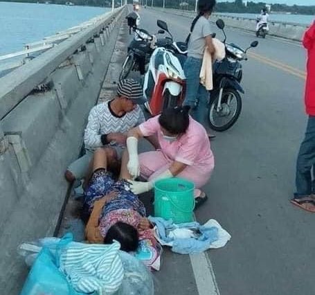 គួរឱ្យអាណិតណាស់…! ស្ត្រីម្នាក់ឈឺពោះសម្រាលកូននៅពាក់កណ្តាលលេីស្ពានកោះកុង
