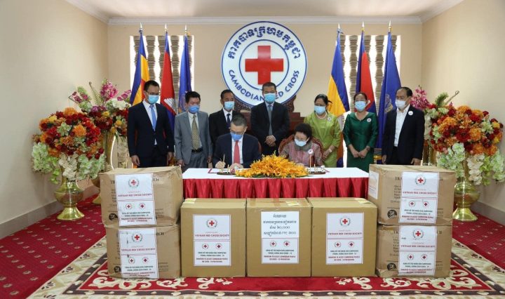 កាកបាទក្រហមកម្ពុជា បានទទួលអំណោយជាម៉ាស់ចំនួន ៦ម៉ឺនម៉ាស់ និងអាវ PPE ចំនួន ៣០០កំផ្លេរ ពីកាកបាទក្រហមវៀតណាម