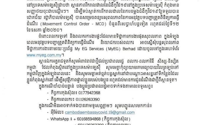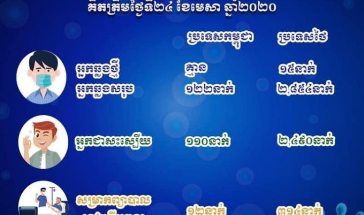 ខេត្តឧត្តរមានជ័យ៖ ពលករខ្មែរធ្វើការស៊ីឈ្នួលតាមទីកន្លែងនានានៅប្រទេសថៃ នៅតែបន្តវិលមកស្រុកបន្តបន្ថែមទៀត តាមច្រកទ្វារព្រំដែនអន្តរជាតិឆងចម ខេត្តសុរិន្ទ- អូរស្មាច់ខេត្តឧត្តរមានជ័យ ។ ពលករទាំងនោះ មានទីកន្លែងកំណើតនៅតាមបណ្តាខេត្តទីទៃពីគ្នា ។ … អានបន្ថែម ពលករខ្មែរបន្តវិលត្រឡប់ពីថៃវិញ តាមច្រកទ្វារព្រំដែនអន្តរជាតិឆងចម ខេត្តសុរិន្ទ -អូរស្មាច់ ខេត្តឧត្តរមានជ័យ