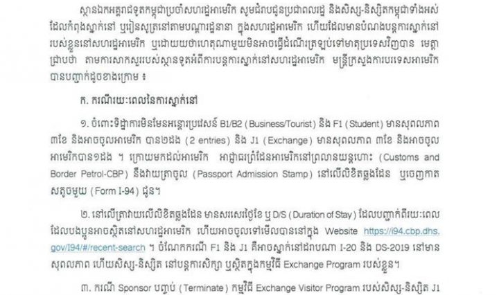 សេចក្តីជូនព័ត៌មានរបស់ស្ថានទូតកម្ពុជាប្រចាំសហរដ្ឋអាមេរិក