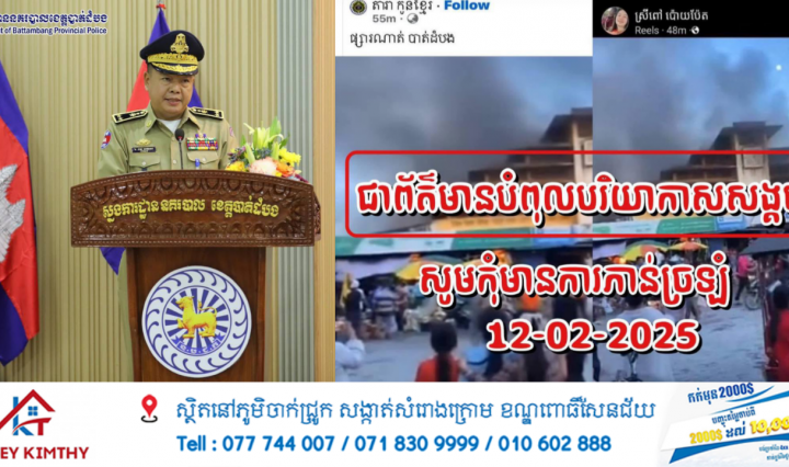 ខេត្តកំពង់ឆ្នាំង ៖ បេក្ខជនក្រុមប្រឹក្សាគណបក្សភ្លើងទៀន ៣រូប នៅសង្កាត់ផ្សារឆ្នាំង ក្រុងកំពង់ឆ្នាំង ខេត្តកំពង់ឆ្នាំងបានប្រកាសផ្តាច់ខ្លួនពីបក្សប្រឆាំង និងគោរពដ៏ខ្ពង់ខ្ពស់ ស្នើសម្តេចតេជោ សុំចូលរួមជីវភាពនយោបាយជាមួយគណបក្សប្រជាជនកម្ពុជាដោយពុំមានការបង្ខិតបង្ខំ … អានបន្ថែម បេក្ខជនក្រុមប្រឹក្សាគណបក្សភ្លើងទៀន ៣រូប បានប្រកាសផ្តាច់ខ្លួនពីបក្សប្រឆាំង