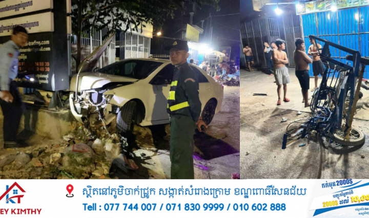 ខេត្តកណ្តាល ៖ រថយន្ដមួយគ្រឿងម៉ាក CAMRY ពណ៌ស ពាក់ស្លាកលេខភ្នំពេញ2AN-5853 បានប្រើប្រាស់ក្នុងល្បឿនលឿន បុករះម៉ូតូសណ្ដោងរ៉ឺម៉កបណ្ដាលឲ្យមនុស្សមួយគ្រួសារ ចំនួន៥នាក់រងរបួសធ្ងន់ស្រាល រួចបន្ដបុកផ្ទាំងស្លាកបាណូទើបទៅមុខលែងរួច។ … អានបន្ថែម រថយន្ដមួយគ្រឿងម៉ាក CAMRY ពណ៌ស ពាក់ស្លាកលេខភ្នំពេញ2AN-5853 បានប្រើប្រាស់ក្នុងល្បឿនលឿន បុករះម៉ូតូសណ្ដោងរ៉ឺម៉កបណ្ដាលឲ្យមនុស្សមួយគ្រួសារ ចំនួន៥នាក់រងរបួសធ្ងន់ស្រាល