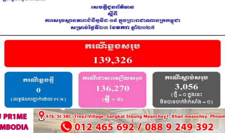 ភ្នំពេញ៖ ក្រសួងសុខាភិបាលកម្ពុជា នៅព្រឹកថ្ងៃសុក្រទី២៤ ខែមករា ឆ្នាំ២០២៥នេះ បានចេញសេចក្តីប្រកាសព័ត៌មានស្តីពីវិធានការការពារ និងរក្សាសុខភាព ក្នុងឱកាសបុណ្យចូលឆ្នាំថ្មីប្រពៃណីចិន និងវៀតណាម។ ក្នុងឱកាសពិធីបុណ្យចូលឆ្នាំថ្មីប្រពៃណីចិន … អានបន្ថែម ក្រសួងសុខាភិបាល សេចក្តីប្រកាសព័ត៌មានស្តីពីវិធានការការពារ និងរក្សាសុខភាព ក្នុងឱកាសបុណ្យចូលឆ្នាំថ្មីប្រពៃណីចិន និងវៀតណាម