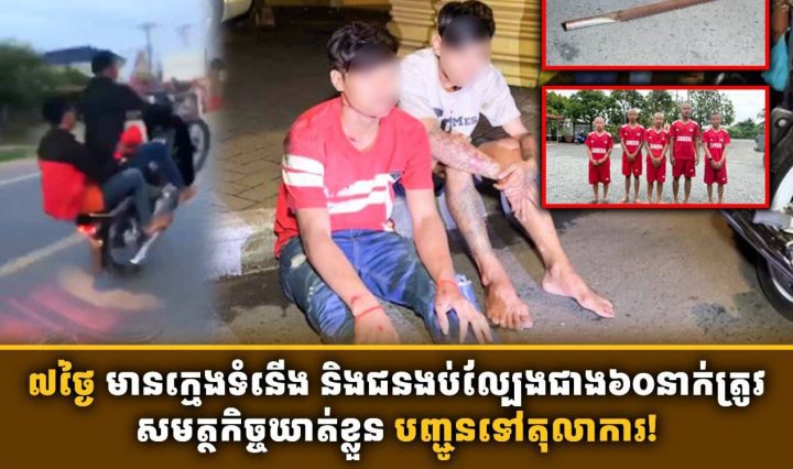 ភ្នំពេញ ៖ ក្នុងរយៈពេល៧ថ្ងៃ គិតចាប់ពីថ្ងៃទី៨ ដល់ថ្ងៃទី១៤ ខែតុលា ឆ្នាំ២០២៥នេះ សមត្ថកិច្ចនគរបាលជាតិ បានចុះបង្ក្រាបក្មេងទំនើងសរុប១៥ករណី ឃាត់ខ្លួនមនុស្ស៥៣នាក់ … អានបន្ថែម ៧ថ្ងៃ មានក្មេងទំនើង និងជនងប់ល្បែងជាង៦០នាក់ត្រូវសមត្ថកិច្ចឃាត់ខ្លួនបញ្ជូនទៅតុលាការ!