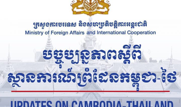 ភ្នំពេញ៖ ក្រសួងការបរទេស និងសហប្រតិបត្តិការអន្តរជាតិ បានចេញសេចក្តីប្រកាសព័ត៌មានស្តីពីលទ្ធផលនៃការបើកសម័យប្រជុំលើកទី៤ ព្រឹទ្ធសភានីតិកាលទី៥ នាថ្ងៃទី១៦ ខែតុលា ឆ្នាំ២០២៥ – ពាក់ព័ន្ធនឹងបញ្ហាព្រំដែនកម្ពុជា-ថៃ៖ … អានបន្ថែម បច្ចុប្បន្នភាពស្តីពីស្ថានការណ៍ព្រំដែនកម្ពុជា-ថៃ ថ្ងៃទី១៦ ខែតុលា ឆ្នាំ២០២៥
