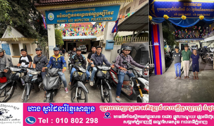 ភ្នំពេញ ៖ ជនសង្ស័យ៣នាក់ ត្រូវបានកម្លាំងជំនាញនិងប៉ុស្តិ៍នគរបាលរដ្ឋបាលច្រាំងចំរេះ២នៃអធិការដ្ឋាននគរបាលខណ្ឌប្ញស្សីកែវ ឃាត់ខ្លួន ក្រោយធ្វើសកម្មភាព ឆក់ខ្សែក ពីក្មេងស្រីអាយុ៥ឆ្នាំម្នាក់។ ជនសង្ស័យ ត្រូវសមត្ថកិច្ច … អាន​បន្ថែម នគរបាលខណ្ឌប្ញស្សីកែវ បង្រ្កាបជនសង្ស័យ៣នាក់ឆក់ខ្សែកពីក្មេងស្រីម្នាក់! ស្នងការនគរបាលរាជធានីភ្នំពេញ លើកទឹកចិត្តឧបត្ថម្ភថវិកា ដល់កម្លាំងជំនាញ