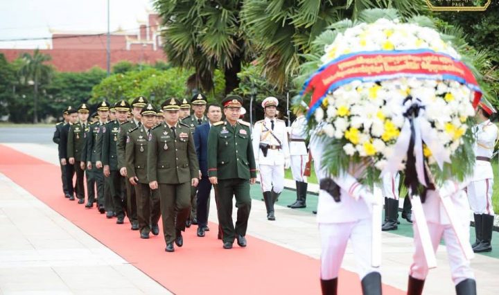 រដ្ឋមន្ត្រីក្រសួងការពារជាតិ ដឹកនាំគណៈប្រតិភូជាន់ខ្ពស់ក្រសួងការពារជាតិ ចូលដាក់កម្រងផ្កា និងគោរពវិញ្ញាក្ខន្ធ នៅស្តូបយុទ្ធជន នីលាក់ណាម រដ្ឋធានីវៀងចន្ទន៍