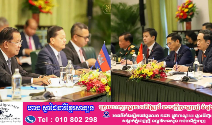 ប្រទេសវៀតណាម ៖ នៅរសៀលថ្ងៃទី២៩ ខែមេសា ឆ្នាំ២០២៥ សម្ដេចអគ្គមហាសេនាបតីតេជោ ហ៊ុន សែន ប្រធានព្រឹទ្ធសភានៃព្រះរាជាណាចក្រកម្ពុជា បានជួបសំដែងការគួរសមពិភាក្សាការងារជាមួយ … អានបន្ថែម សម្តេចតេជោ ហ៊ុន សែន ជួបសំដែងការគួរសម និងពិភាក្សាការងារជាមួយ លោក ជិន ថាញ់មិន ប្រធានរដ្ឋសភាវៀតណាម