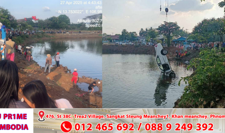 រថយន្តបាឡែនមួយគ្រឿងធ្លាក់ចូលបឹងកន្សែងតែម្តង សំណាងមិនគ្រោះថ្នាក់ដល់អាយុជីវិត