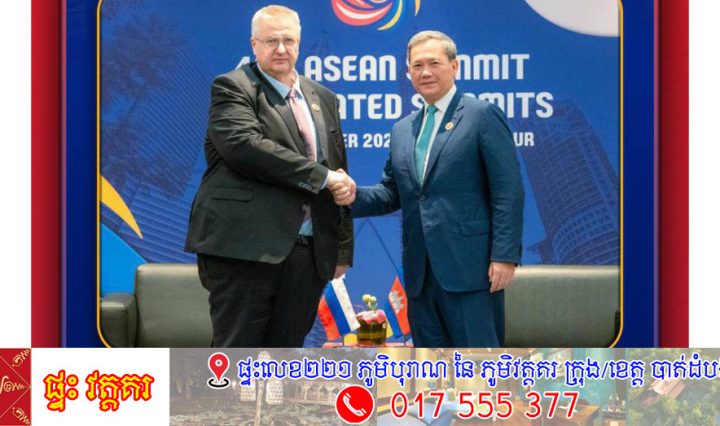 ម៉ាឡេស៊ី៖ នាព្រឹក ថ្ងៃទី២៨ ខែតុលា ឆ្នាំ២០២៥, សម្តេចមហាបវរធិបតី ហ៊ុន ម៉ាណែត នាយករដ្ឋមន្រ្តី នៃព្រះរាជាណាចក្រកម្ពុជា … អានបន្ថែម កម្ពុជា-រុស្ស៊ី ឯកភាពបន្តពង្រឹងនិងពង្រីក កិច្ចសហប្រតិបត្តិការទ្វេភាគីថែមទៀត