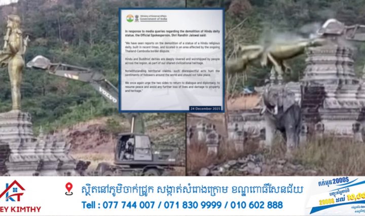 រដ្ឋមន្ត្រីក្រសួងព័ត៌មាន​៖​ សារព័ត៌មាននៅក្នុងប្រទេសឥណ្ឌា បានផ្សព្វផ្សាយពីរូបភាពដែលយោធាថៃ ឈ្លានពានលើទឹកដីកម្ពុជា និងបំផ្លាញរូបសំណាកព្រះវិស្ណុ ដែលសាងសង់នៅលើទឹកដីកម្ពុជា សម្រាប់ការគោរពបូជា