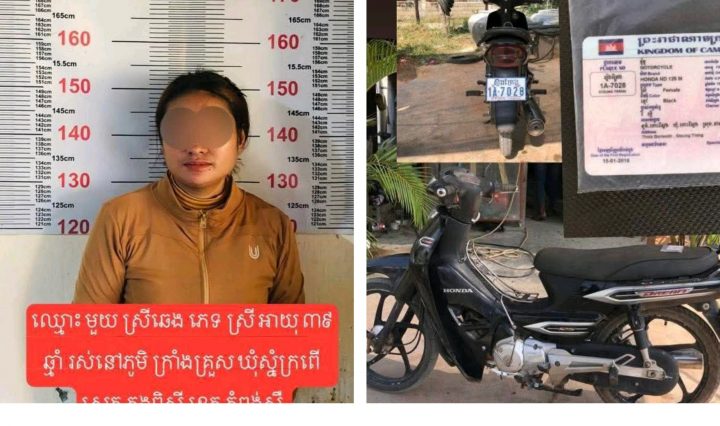 ចោរស្រីដៃឆេីតលួចម៉ូតូបាន៤ថៃ្ងជាប់ខ្នោះដៃនគរបាលស្រុកគងពិសី
