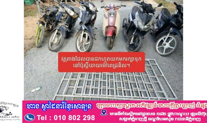ខេត្តកំពង់ស្ពឺ ៖ ករណីចោរហារយបានកើតឡើងនៅលើផ្លូវល្បឿនលឿន ដោយមានក្រុមចោរបានធ្វើសកម្មភាពលួចអាគុយកាមេរ៉ាសុវត្ថិភាព និងលួចដែកបង្កាន់ដៃផ្លូវល្បឿនលឿន យកទៅលក់បន្តនៅកន្លែងទិញអេតចាយមួយក្នុងស្រុកភ្នំស្រួច ។ ករណីនេះត្រូវបានបកស្បែក ដោយកម្លាំងនគរបាលប៉ុស្តិ៍ឃុំយាយម៉ៅពេជ្រនិល និងនគរបាលស្រុកភ្នំស្រួចព្រមទាំងកំពុងស្រាវជ្រាវរកអ្នកទទួលទិញ … អានបន្ថែម លួចអាគុយនិងដែកបង្កាន់ដៃផ្លូវល្បឿនលឿនសូម្បីឧបករណ៍ការពារលើផ្លូវក៏ចោរហារយមិនប្រណីដែរ