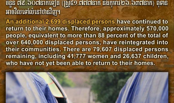 ភ្នំពេញ៖ ក្រសួងមហាផ្ទៃ នៃរាជរដ្ឋាភិបាលកម្ពុជា សូមជម្រាបជូនថា ចាប់តាំងពីបទឈប់បាញ់រវាងកម្ពុជា និងថៃ ចូលជាធរមាន កាលពីថ្ងៃទី២៧ ខែធ្នូ ឆ្នាំ២០២៥មក … អានបន្ថែម ក្រសួងមហាផ្ទៃ ក្នុងចំណោមពលរដ្ឋភៀសសឹកសរុបជាង៦សែន៤ម៉ឺននាក់ មានជិត៨៨% បានវិលត្រឡប់ទៅលំនៅឋានវិញ ខណៈអ្នកបន្តស្នាក់នៅជំរំមានជិត៨ម៉ឺននាក់