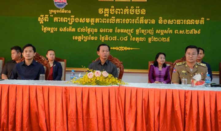 ខេត្តព្រៃវែង៖ លោកបណ្ឌិត ឆាយ សុផល រដ្ឋលេខាធិការក្រសួងព័ត៌មាន បានជំរុញដល់អ្នកសារព័ត៌មានទាំងអស់ ត្រូវបង្កើនការផ្សាយពីផលិតផលជាតិ ឱ្យកាន់តែខ្លាំង ក្នុងពេលយើងកំពុងមានបញ្ហាព្រំដែន ជាមួយប្រទេសថៃ … អានបន្ថែម មន្ត្រីជាន់ខ្ពស់ក្រសួងព័ត៌មាន ជំរុញដល់អ្នកសារព័ត៌មានទាំងអស់ត្រូវបង្កើនការផ្សាយពីផលិតផលជាតិឱ្យកាន់តែខ្លាំង ក្នុងពេលយើងកំពុងមានបញ្ហាព្រំដែនជាមួយប្រទេសថៃ