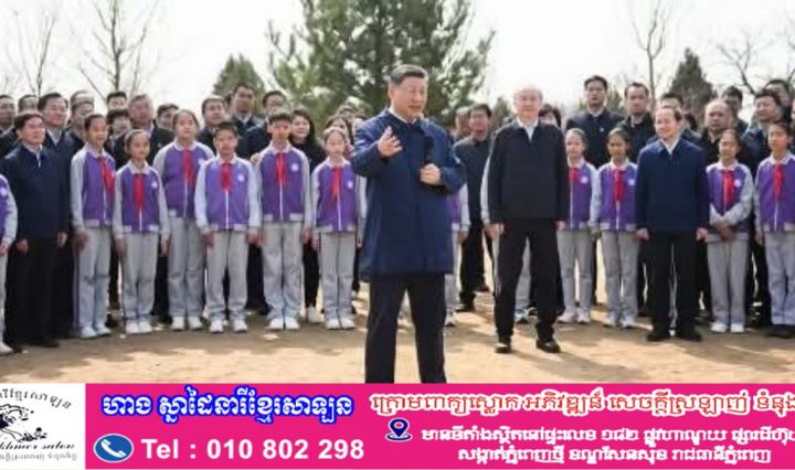 លោកXi Jinping ថ្លែងក្នុងឱកាសអញ្ជើញចូលរួមសកម្មភាពដាំដើមឈើដោយស្ម័គ្រចិត្តនៅទីក្រុងប៉េកាំង ថា បន្ថែមភាពត្រចះត្រចង់ដល់ភ្នំនិងទឹក និងភាពលេចធ្លោនៃការធ្វើទំនើបកម្មតាមបែបផែនចិន