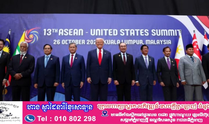 នៅក្នុងកិច្ចប្រជុំកំពូលអាស៊ាន-អាមេរិក នៅទីក្រុងគូឡាឡាំពួរ កាលពីថ្ងៃទី២៦ ខែតុលា ប្រធានាធិបតីអាមេរិក លោក Donald Trump បានធានាដល់មេដឹកនាំអាស៊ីអាគ្នេយ៍ថា ទីក្រុងវ៉ាស៊ីនតោននឹងរក្សាតួនាទីរបស់ខ្លួនជាដៃគូដ៏រឹងមាំ … អានបន្ថែម លោក Donald Trump បានធានាដល់មេដឹកនាំអាស៊ីអាគ្នេយ៍ថា ទីក្រុងវ៉ាស៊ីនតោននឹងរក្សាតួនាទីរបស់ខ្លួនជាដៃគូដ៏រឹងមាំ