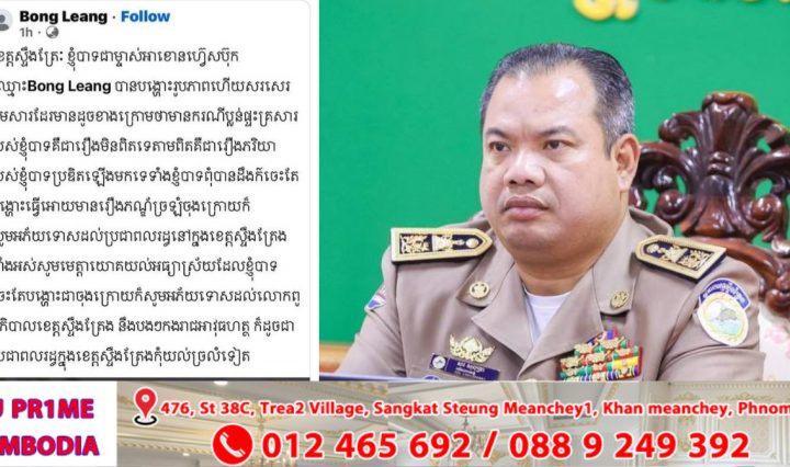 អភិបាលខេត្តស្ទឹងត្រែង៖ ការប្រឌិតរឿងរបស់ម្ចាស់អាខោន ហ្វេសប៊ុក Bong Leang បង្ហោះថាមានករណីប្លន់ផ្ទះគ្រួសាររបស់គាត់ គឺប៉ះពាល់ដល់ការខិតខំប្រឹងប្រែង និងកិត្តិយសប្រជាជនខេត្តស្ទឹងត្រែង