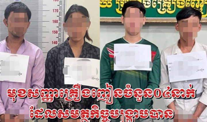 មុខសញ្ញាគ្រឿងញៀនចំនួន០៤នាក់ត្រូវបានបង្រ្កាបអនុវត្តតាមច្បាប់នៅក្រុងបាត់ដំបង