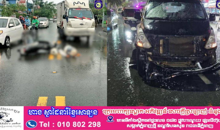 ភ្នំពេញ ៖ បុរសម្នាក់បានបោកក្បាលនិងរថយន្ត ស្លាប់ភ្លាមៗមួយរំពេច បន្ទាប់ពីជនរងគ្រោះជិះម៉ូតូតែម្នាក់ឯងយ៉ាងលឿនជ្រុលទៅបុកនិងរថយន្តធន់ធំ សណ្ដោងកុងតឺន័រ ពីក្រោយពេញទំហឹង កាលពីវេលាម៉ោង២១:៣០នាទី ថ្ងៃទី១៥ ខែសីហា … អានបន្ថែម បុរសម្នាក់ជិះម៉ូតូ Honda C125 ទៅបុករថយន្តធន់ធំ សណ្ដោងកុងតឺន័រពីក្រោយបណ្ដាលឲ្យបោកក្បាលស្លាប់មួយរំពេច