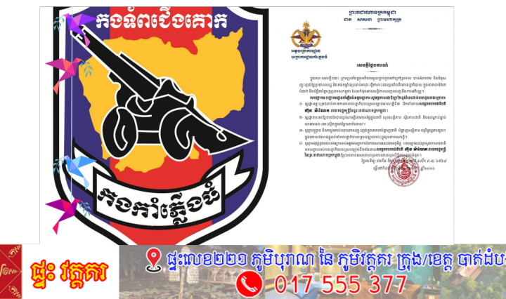 ភ្នំពេញ ៖ បញ្ជាការដ្ឋានកងកាំភ្លើងធំ នៃអគ្គមេបញ្ជាការដ្ឋានកងយោធពលខេមរភូមិន្ទ បានចេញសេចក្តីថ្លែងការណ៍ប្រកាសថ្កោលទោស និងប្រឆាំងដាច់ខាតក្រុមឧទ្ទាមក្រៅច្បាប់ ដែលចង់ផ្ដួលរំលំរាជរដ្ឋាភិបាលស្របច្បាប់ ដឹកនាំដោយសម្ដេចមហាបវរធិបតី ហ៊ុន ម៉ាណែត … អានបន្ថែម បញ្ជាការដ្ឋានកងកាំភ្លើងធំ ប្រកាសថ្កោលទោសក្រុមឧទ្ទាមក្រៅច្បាប់ដែលចង់ផ្ដួលរំលំរាជរដ្ឋាភិបាល និងប្តេជ្ញាការពារសន្តិភាពស្ថិរភាពនយោបាយជូនជាតិនិងប្រជាជន ទោះក្នុងតម្លៃណាក៏ដោយ