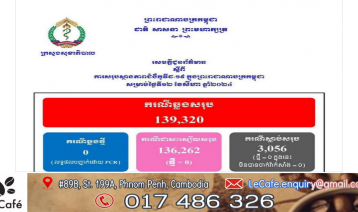ខេត្តសៀមរាប៖ ក្រសួងកសិកម្ម រុក្ខាប្រមាញ់និងនេសាទ បានឱ្យដឹងនៅថ្ងៃទី១៣ ខែសីហា ឆ្នាំ២០២៤នេះថា៖ លោក ប៉ែន ផល្លីកា អនុរដ្ឋលេខាធិការក្រសួងកសិកម្ម … អានបន្ថែម កម្លាំងចម្រុះបង្រ្កាប និងបំផ្លាញចោលឧបករណ៍នេសាទខុសច្បាប់ចំនួន ៥ករណី ដកហូតឈ្នាងអូសលៀស-ខ្ចៅចំនួន ៨គ្រឿង ក្នុងភូមិសាស្ត្រខេត្តកំពង់ធំ និងខេត្តសៀមរាប