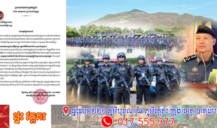 ភ្នំពេញ ៖ នាយឧត្តមសេនីយ៍ សៅ សុខា អគ្គមេបញ្ជាការរងកងយោធពលខេមរភូមិន្ទ និងជាមេបញ្ជាការកងរាជអាវុធហត្ថលើផ្ទៃប្រទេស ព្រមទាំងនាយទាហាន នាយទាហានរង និងពលអាវុធហត្ថទាំងអស់ … អានបន្ថែម កម្លាំងអាវុធហត្ថទូទាំងប្រទេស ប្រកាសថ្កោលទោស និងប្រឆាំងដាច់ខាតចំពោះក្រុមឧទ្ទាមក្រៅច្បាប់ ដែលចង់ផ្ដួលរំលំរាជរដ្ឋាភិបាល និងប្ដេជ្ញាការពារសុខសន្ដិភាពជូនជាតិ និងប្រជាជន ទោះក្នុងតម្លៃណាក៏ដោយ