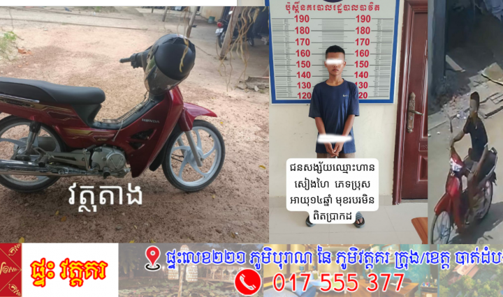 ខេត្តស្វាយរៀង៖ សមត្ថកិច្ចនគរបាលបានឃាត់ខ្លួនជនសង្ស័យម្នាក់ករណី ប៉ុនប៉ងរំលោភសេពសន្ថវៈ(មិនបានសម្រេច)នៅស្រុកកំពង់រោទិ៍។ ហេតុការណ៍នេះបានកើតឡើងនៅវេលាម៉ោង៧និង៣០នាទី ព្រឹកថ្ងៃទី៩ ខែសីហា ឆ្នាំ២០២៤ ស្ថិតនៅត្រង់ចំណុចភូមិព្រៃធ្លក ឃុំស្វាយតាយានស្រុកកំពង់រោទិ៍។ យោងតាមសមត្ថកិច្ចនគរបាលស្រុកបានឱ្យដឹងថា … អានបន្ថែម សមត្ថកិច្ចឃាត់ខ្លួនជនសង្ស័យម្នាក់ករណីប៉ុនប៉ងរំលោភសេពសន្ថវៈ(មិនបានសម្រេច)