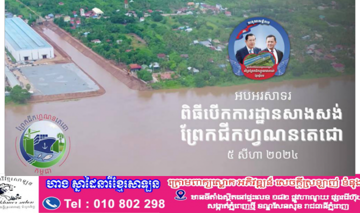 ភ្នំពេញ ៖ អបអរសាទរពិធីបើកការដ្ឋានព្រែកជីកហ្វូណនតេជោ នៅសល់តែ៤ថ្ងៃទៀតប៉ុណ្ណោះ គម្រោងព្រែកជីកហ្វូណនតេជោ នឹងបើកការដ្ឋានជាផ្លូវការ ក្រោមអធិបតីភាពដ៏ខ្ពង់ខ្ពស់របស់ សម្ដេចមហាបវរធិបតី ហ៊ុន ម៉ាណែត … អានបន្ថែម អបអរសាទរ ! ថ្ងៃទី៥ សីហា ២០២៤ ថ្ងៃប្រវត្តិសាស្ត្រ ពិធីបើកការដ្ឋានសាងសង់ព្រែកជីកហ្វូណនតេជោ