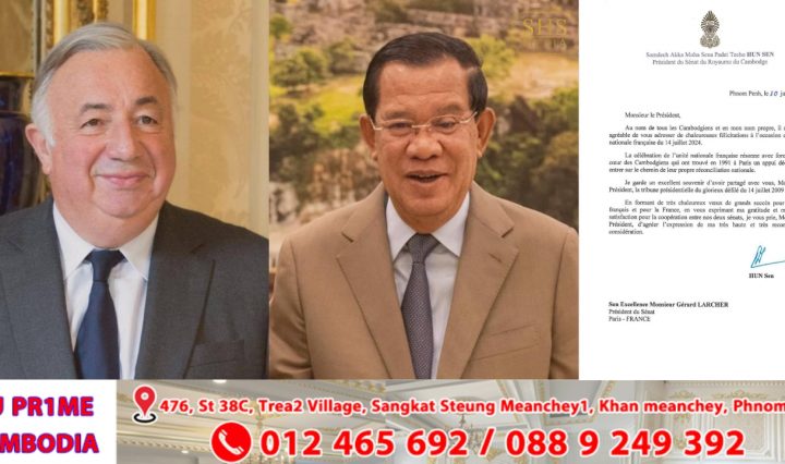 សម្តេចអគ្គមហាសេនាបតីតេជោ ហ៊ុន សែន ប្រធានព្រឹទ្ធសភា នៃព្រះរាជាណាចក្រកម្ពុជា ផ្ញើសារលិខិតអបអរសាទរ ជូនចំពោះ ឯកឧត្តម Gérard Larcher ប្រធានព្រឹទ្ធសភាបារាំង ក្នុងឱកាសនៃទិវាបុណ្យជាតិបារាំង ថ្ងៃទី១៤ ខែកក្កដា ឆ្នាំ២០២៤